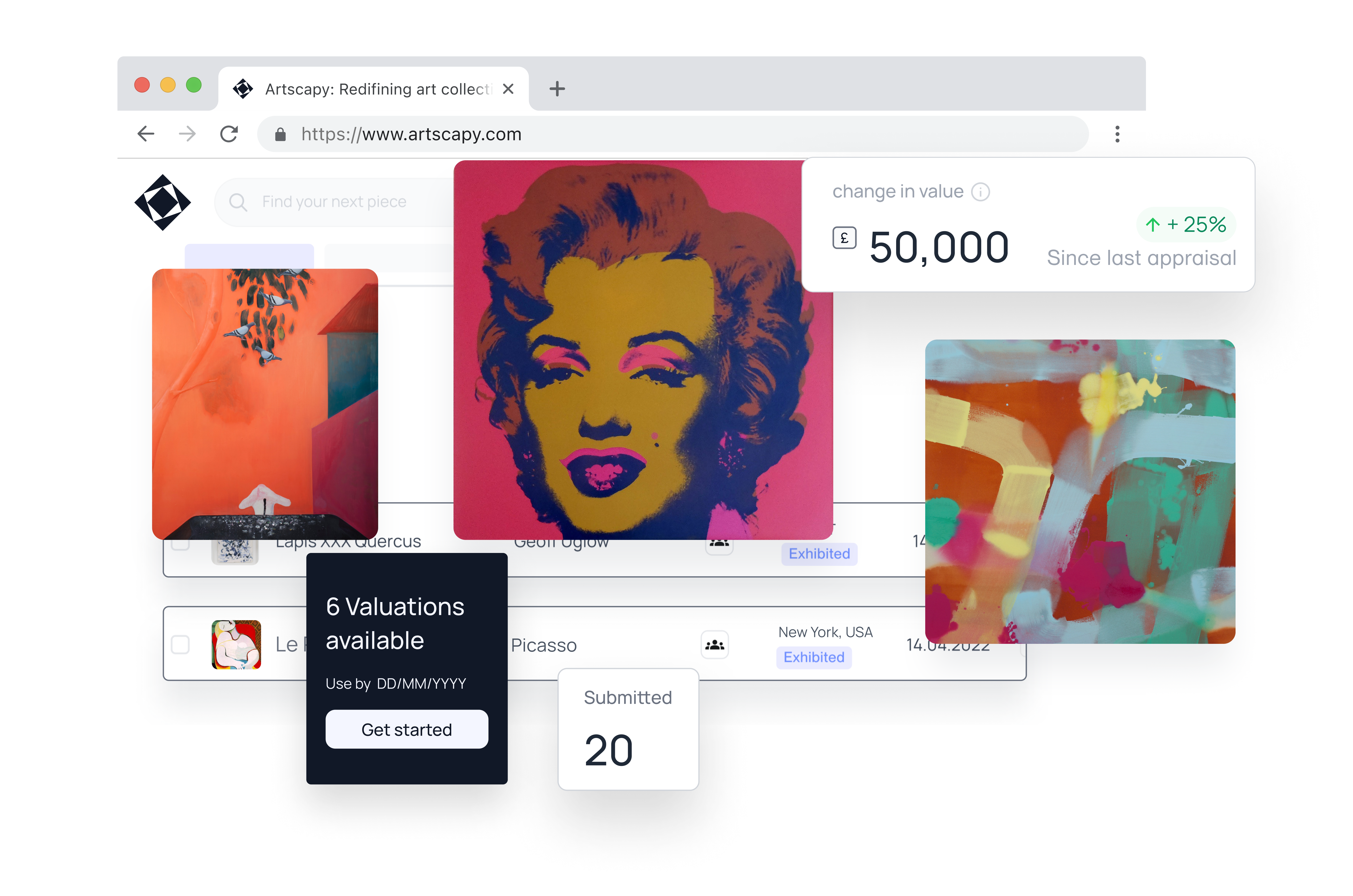 Update the value of your art manually or request an art appraisal for just £59.99 each.